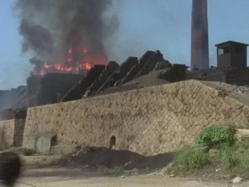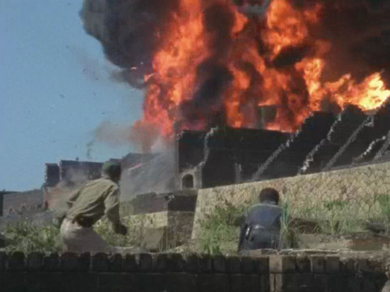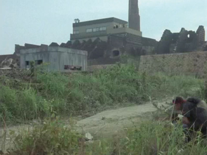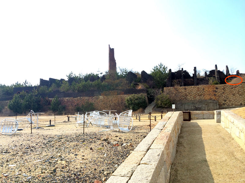 ※この画像からだと三つある煙突の中の大きなメインの煙突ではなく中央の崩れた煙突の付近に要塞が建っていたことがわかる。