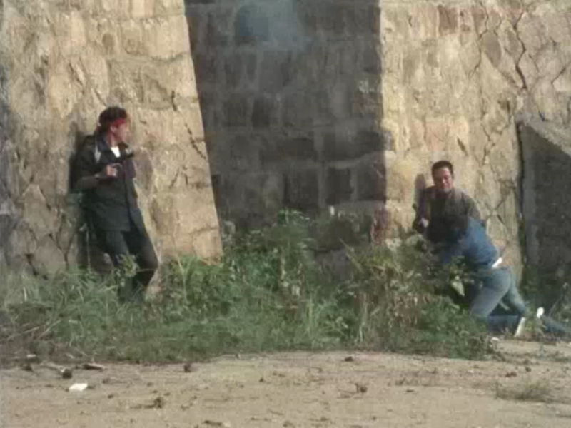 ※崩れたレンガを防御壁に突入
