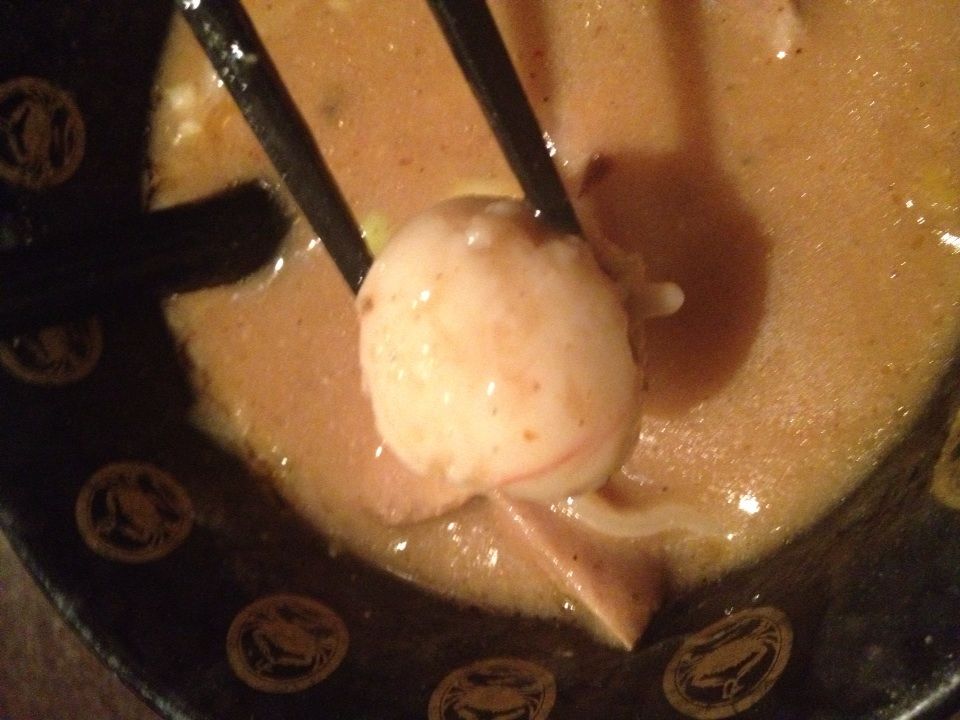 トッピングした蟹ボールを食べてみるとこれもまたスープで少し温かくなったかにボールが噛むと口の中でホロリと崩れ蟹の風味があるれる。またもや思わず顔がほころんでしまう(^ ^)