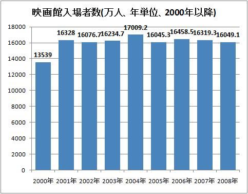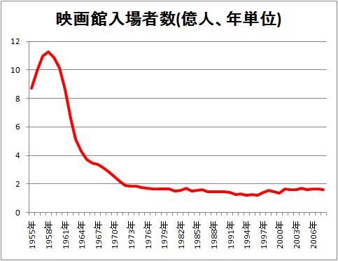 自分がなぜそういう風に思うかというと、ここ50年あまりの映画館への来場者数は1970年代から2010年までほとんど変っていない。1985〜1995年に映画料金は値上げされているけどそれでも入場者数は変わらない。